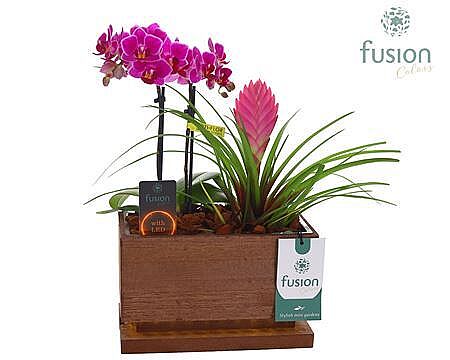 Plant Mix Phal In Wood Box S With Led