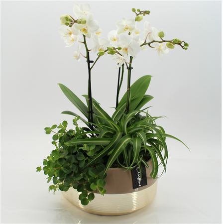 Plant Mix Phal In Ceramic Bowl Gold