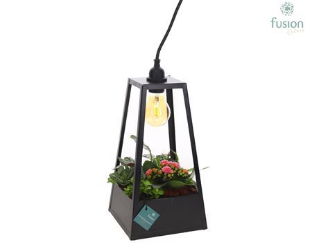Plant Mix In Metal Lantern Black With Light