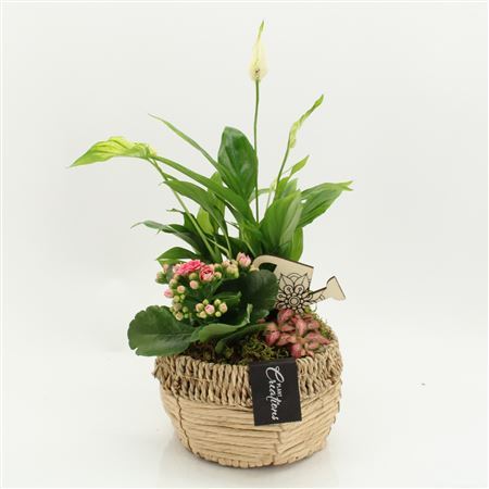 Plant Mix In Basket Seagrass With Deco