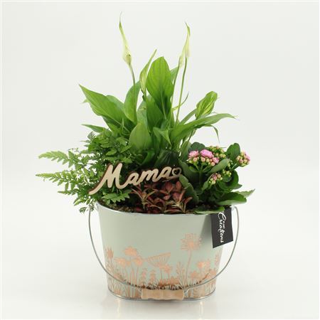 Plant Mix In Zinc Bucket Oval Green With Deco
