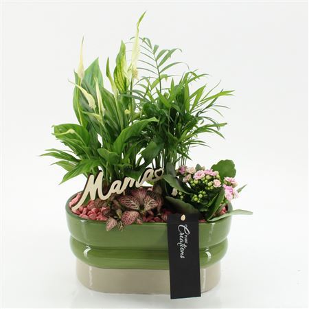 Plant Mix In Ceramic Oval Green Xl With Deco