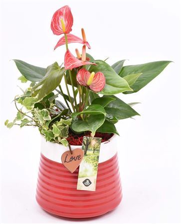 Plant Mix In Ceramic Red With Deco