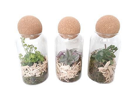 Pilea Depressa In Glass Vase With Corkball Lid