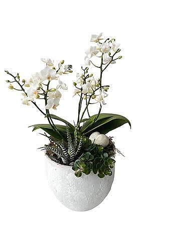 Plant Mix Phal In Ceramic Ball Grey With Deco