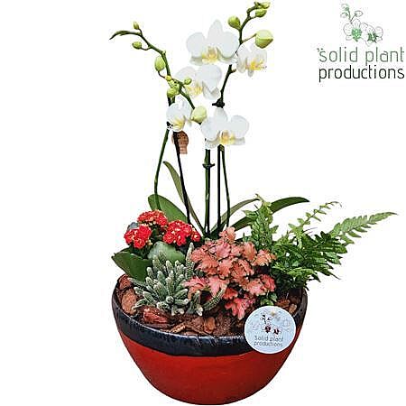 Plant Mix Phal White In Ceramic Olivia Red