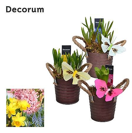 Bulb Mix In Zinc Bucket Copper With Butterfly Deco