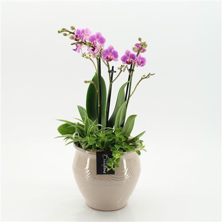Plant Mix Phal In Ceramic Beige