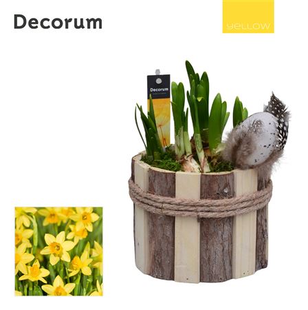 Narc Tete A Tete In Wood Pot Round With Easter Dec