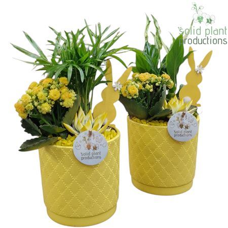Plant Mix In Ceramic Amy Yellow With Deco